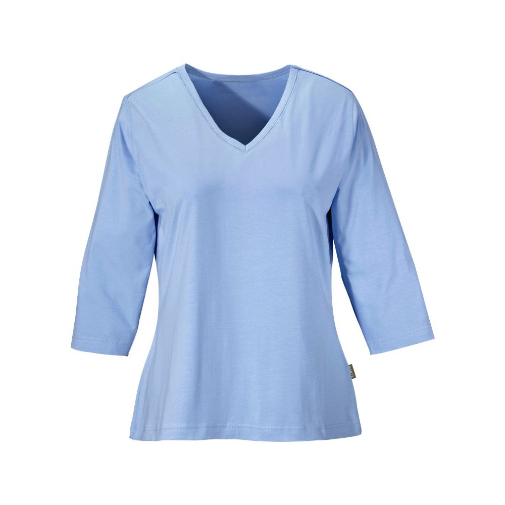 Licht getailleerd model. V-hals. 3/4 mouwen. Ruglengte 69 cm voor maat C38/40.